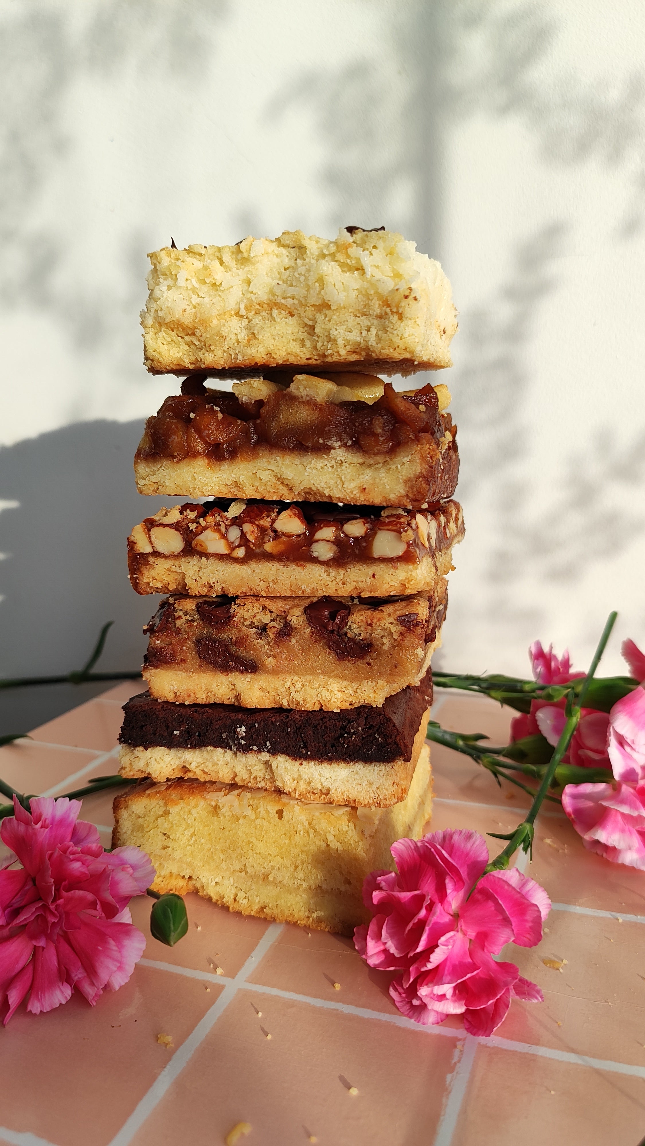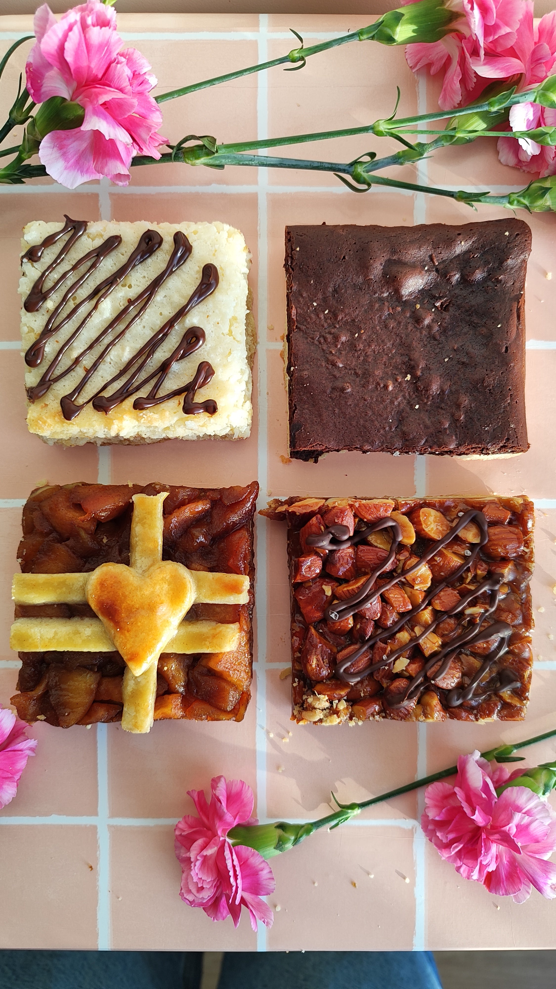 Four artisan pie bars, four love stories. Our bestselling box includes one of each core flavour: Almond Toffee, Coconut, Chocolate Fudge, and Apple Pie. Made to show love.